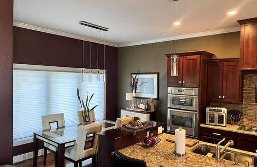 Visit this modern 5 bedroom home that is ready to accommodate up to 10 guests. Spacious kitchen and living room with large island are perfect for any gathering. Master suite has double vanities, glass shower and an extra large whirlpool tub. Fully stocked kitchen has all dinnerware, utensils and appliances. There is a large family room and gym in the lower level. Quiet private back yard complete with fire area, furniture, gas grill and a Traeger flatrock. Nearby attractions include House on the Rock, American Players Theater, Taliesin, Wisconsin Dells, Governor Dodge State Park, the Wisconsin River and much more. Within walking distance to the public pool, downtown shops and restaurants.