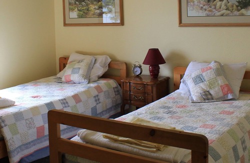 The downstairs suite contains two bedrooms and one full bathroom. The main bedroom has a king bed and the second bedroom has two twin beds, two closets, and a sink. The spacious laundry room has large capacity washer and dryer and a counter for easy laundry folding. There are linens for every bed and bathroom and internet access.