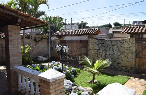 Beautiful house with 4 bedrooms, two living rooms, large kitchen with barbecue and wood stove, two internal bathrooms and an external toilet, large outdoor area, option for 5000 liter plastic pool, two car covered garage and one without covered. Rustic style with brick and demolition woods, gardens and plants, gym and geek. About 3 km from the historic center of São João del Rei.