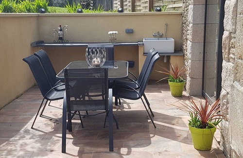A beautifully renovated Mill Workers Cottage, nestled in a tiny hamlet in the heart of Brittany next to a 10 acre lake, (access and fishing available by request). La Notre sleeps 10 with 3 double and 1 twin bedrooms, 3 bathrooms and a double sofa bed in the observatory, a chance to take advantage of our clear night sky's and star watch with the in house telescope!. La Notre has a large private garden with outdoor kitchen/BBQ and dining area, its own private hot tub and heated swimming pool. The perfect venue for a family vacation.