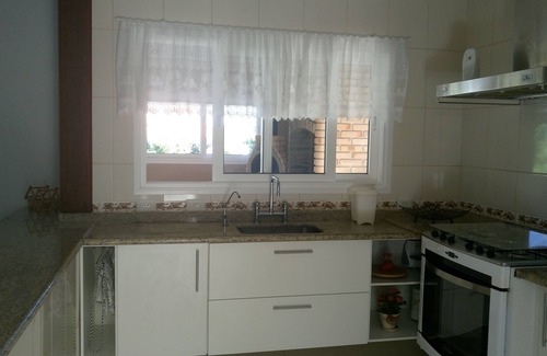 . 3 bedrooms, 1 suite, internal bathroom, external bathroom and 1 toilet, kitchen, dining room, integrated TV room with kitchen, hall and outdoor area, conservatory, laundry room, gourmet space with barbecue, pizza oven and table with 12 chairs, brand new vinyl pool, garden with fruit trees: blackberry, lemon, pitanga, pomegranate, among others, central heating (solar / gas);
