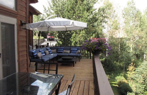 Not only is the house comfortable and well-appointed, but it provides a unique amount of privacy for a town location. One of the most special features is the large outdoor deck complete with a dining table, comfy couches and an outdoor gas fireplace. There is also a small private yard and hammock. The hot tub is completely private and has views of the national forest. We often see deer, moose, and fox in the forest.