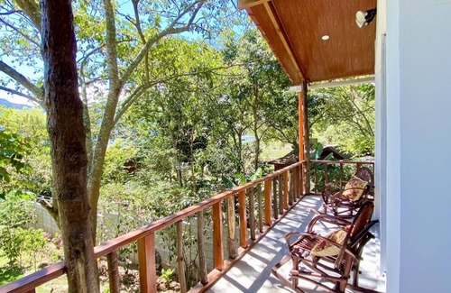 A studio designed treehouse that has everything you need to enjoy your stay comfortably with high vaulted ceilings, a wrap around deck, private bathroom and a kitchenette. This lovely floating house is perfect for couples, singles or friends.