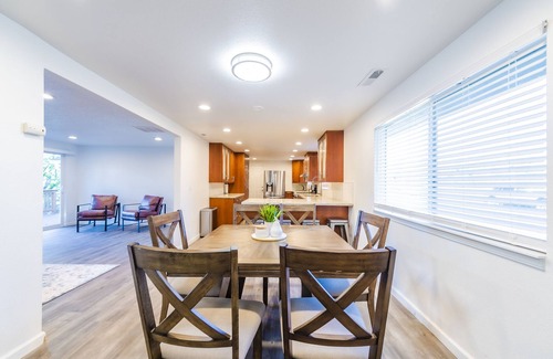 Same day bookings allowed. Come enjoy a quiet stay in our beautiful fully remodeled home on a dead end and quiet street on 36 Acres of land. New kitchen, granite counter tops, new flooring, all new paint. Mater suite with bathroom and walk in closet. Very beautifully furnished and decorated. Ping pong table and pool table in the garage for entertainment. Big deck, and a covered patio in the backyard with seating and an outdoor fire pit. Enjoy soaking in the hot tub with a forested view and quiet backyard. Plenty of space for everyone.