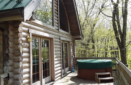Beautiful Log Chalet, Hot Tub, Gas Grill, Secluded on 6 wooded acres. Privacy | Ski Chalet in Stanley
