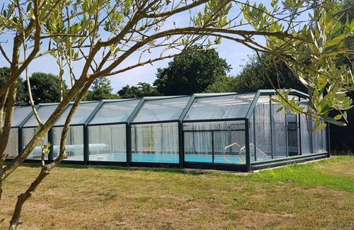 For unforgettable moments with family, friends, come and enjoy this large farmhouse near the Rance, the beaches of Dinard, Saint-Cast and the famous port of Cancale. Its big garden without opposite with 2 terraces, swings and swimming pool (10x5) with sight on the fields, promise you beautiful days to relax you with the song of the birds. Thanks to its glass roof, the pool becomes a place of relaxation accessible in any weather in season. It is heated from April 20th to October 15th.