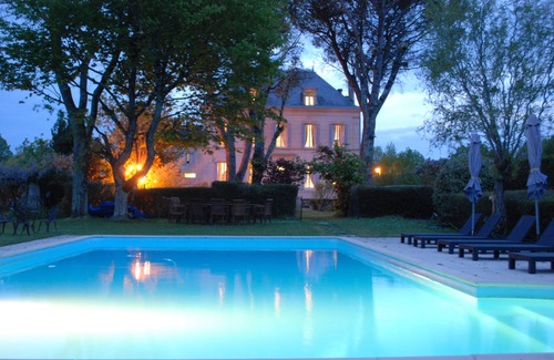 A typical 19th century Charente Manor House set in spacious gardens with a 12 x 6 metre pool. The 7 rooms are over 2 floors with private bathrooms; some rooms share a bathroom. The unique ambiance of the house comes from the high ceilings, beautiful, large dining room with views to the vineyard next door and huge lounge with comfortable sofas and chairs, fireplace and an elegant hallway. Bedrooms have high ceilings and are tastefully and luxuriously decorated. The large kitchen is fully equipped with double oven, gas cooker, grill, microwave, dishwasher and fridge freezer. There is a dining table in the kitchen. There's plenty of space for barbecues and lazing around in the extensive gardens, with sun-beds and garden furniture. The house has tall double-glazed windows which are newly installed.