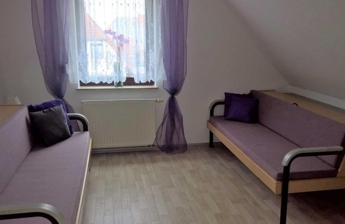 Especially suitable for fitters and field workers. All rooms and the sprawling gallery are modern in style and have a TV. There is a bright, open-topped conservatory, which is used as a dining area, a large gallery with adjoining, modern single kitchen and 2 rooms with single beds, a spacious bathroom with tub and shower temple. Both in the garden and on the covered balcony, the relaxation is possible. The property is completely fenced and offers privacy. For the vehicle there is a parking lot directly at the house. When booking with children: please children from 9 years, due to the stairs