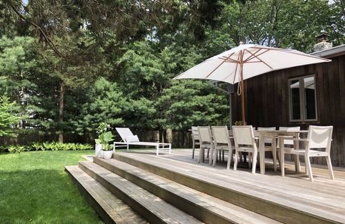Newly renovated, sun-drenched, air-conditioned beach house with salt water swimming pool, outdoor shower and large wrap around deck with outdoor seating and wood pellet grill/smoker. Landscaped, compound-like property. Living room with vaulted ceiling, dining room with fire place. Well appointed kitchen. 3 minute drive to Bay beaches, 10 minute drive to Ocean beaches. TV/Games room with foosball and ping pong tables. 5 minutes to Jackson Pollack’s house/museum. 10 minutes to Amagansett and town of East Hampton.