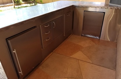 Very modern house upgraded to the max. The house is about 1,700 sf with 3 bedrooms and 2 bathrooms. The Master has a King size bed and the other bedrooms are Queen. The house has a beautiful backyard with a big bar, lights, bbq, pool and Spa. The pool isn't heated but the Spa more than makes up for it.