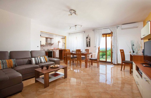 Serenity, untouched nature and a view to the sea only 4 km away, all belong to Villa Zora, located at the outskirts of a small quiet village Brgod. Villa Zora is a modern and luxurious family house offering 3 luxurious, completely air conditioned apartments, two with room for 6, and one for 4 + 2 which makes the total capacity of 16 + 2.