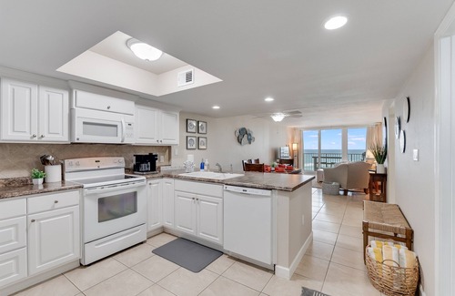 With two bedrooms and two full baths, Beach Life is Life is the perfect rental for families! Floor-to-ceiling sliding glass doors lead you to your large balcony that spans living room and bedroom giving you the BEST sunset views. We provide a fully equipped kitchen, plenty of dining room seating, and comfortable living room. Or enjoy the ocean breeze while serving your meals on the balcony – there’s a large table and extra seating outside as well. Should you decide to do laundry, we offer new washer/dryer. All linens are provided, including beach towels.