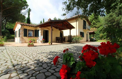 Perhaps it is the well-kept, panoramic garden shaded by tall pines and completely fenced, the lovely private swimming pool (size 6 x 9 m - depth 1.20 m - open from 01st May to 30th September) or perhaps the Jacuzzi (6 seats - extra charge) set among the olive trees...? Or, could it be the very idea of the country villa, its secluded but not isolated location, and the warm atmosphere created inside with pastel colours and rustic style furniture.