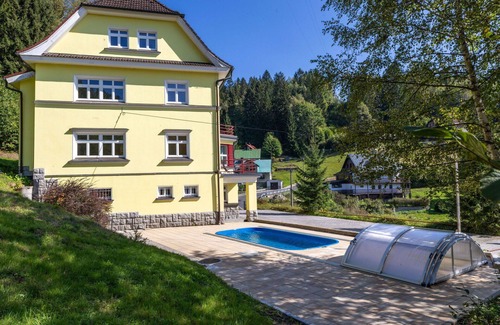 Beautiful private villa for 24 guests with private pool, WIFI, TV and terrace is located in Albrechtice v Jizerskych horach. Beautiful private villa for 24 guests with private pool, WIFI, TV and terrace provides accommodation, featuring Barbecue/Outdoor Cooking, Pool, Security/Safety, among other amenities. This Villa features Barbecue/Outdoor Cooking, Pool, Security/Safety, to make your stay a comfortable one.