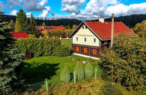 Situated 7 km from Děčín, the "Kámen" country house offers a tranquil and picturesque vacation rental in Nový Bor, Czech Republic. This detached property, built in 1875 and renovated in 2019, boasts a sunny and peaceful location just 200 meters from the forest's edge. You can enjoy the 1'600 m2 private garden, an above-ground swimming pool (5.5 m diameter, available seasonally from June 1 to August 30), a patio, pergola, and a barbecue area. The house also features a storage room for bicycles and parking for up to 3 cars. Amenities such as Internet Wifi, a yard, and parking are available on site.