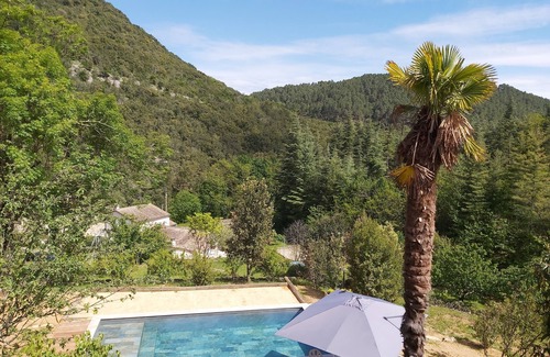 Large family home nestled in the heart of the Cevennes facing our limestone and Banne Village of unmissable character in the Ardèche with its 27 Dolmens and the richness of its historical past.