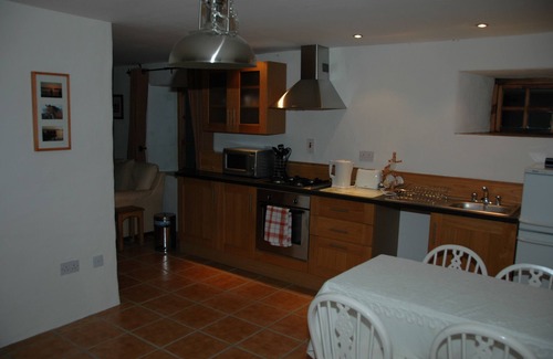 In the main house, the well-equipped kitchen features the original eighteenth-century stepped chimney, a Stanley traditional stove, and a large family-style kitchen table. The kitchen opens out through French doors onto a stone patio which overlooks a private garden and rolling hills in the distance. One bedroom, containing a double bed, is in a loft above the kitchen. The main house also contains a sitting room with T.V. and a formal dining room featuring slate floor and a large table that seats eight. The master bedroom is above the dining room. It has a king-sized bed, wood floor and an adjoining half bathroom. All duvets, bed clothes and towels are inclusive, as are light and heat. Both houses have central heating and the main house has under floor heating in addition to radiators.