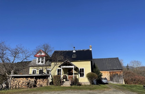 Lovely light filled space. 3 bedrooms, 1 1/2 baths.Kitchen/dining room has wood stove and couch for social cooking. Living room also has wood stove and grand piano. The master bedroom has a king size bed and the other two rooms have queens. Perfect spot for pets and kids. Large lawn, stream, fields and forest. Beautiful location to step out the door and hike, bike, ski and skate.