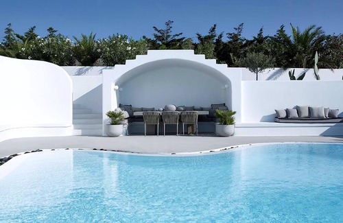 Noteworthy is Greta's exclusive status as part of a secure complex of luxury properties. Should you wish to share this exquisite experience with more friends, the neighboring luxury villas stand ready to accommodate them in style. Moreover, if you ever desire a change of scenery, the sparkling Aegean Sea awaits just 700 meters away at Exo Gialos beach, inviting you to take a refreshing swim. For those yearning to explore the island's secluded beaches, a simple call to the concierge team can arrange a private yacht tour around the enchanting volcano.