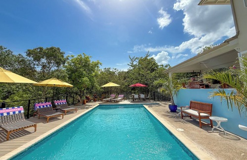 Seascape is a spacious 3 bedroom villa located within the gated community of Silver Sands Estate, Trelawny. The villa boasts a large pool and deck area with chaise loungers, outdoor dining and comfortable seating. There is a convenient wet bar with wine fridge on the outdoor patio with comfortable seating and another dining area. The staff, chef and housekeeper, arrive every morning to prepare your meals and maintain the villa, laundry service and daily housekeeping included. Guests love the relaxed vibe at Silver Sands and the crystal clear turquoise water and powder white sand is hard to beat! There is a beach bar, patio, and restaurant for guests to enjoy.