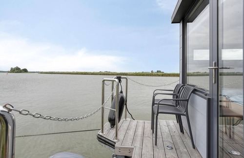 Treat yourself to a break from everyday life in a stylish houseboat with an unobstructed view over the water. Enter the attractive living area through large sliding doors and let your gaze wander over the water. The combination of light-coloured wood, clean lines and large window fronts creates an airy, open atmosphere. Relax on the modern sofa and enjoy a coffee with a direct view. Prepare small meals or snacks for your excursions in the compact kitchen.