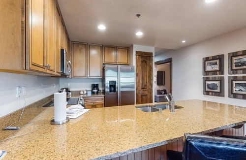 Savor your morning cup of coffee with terrific views from the private balcony of this beautiful BlueSky mountain condo! Snuggle up with a good novel next to a crackling fire in the stacked-stone gas fireplace. Take advantage of the free WiFi to download your favorite playlists to your device and enjoy a DVD on the large TV. When hunger hits, the fully equipped kitchen features stainless steel appliances, granite appliances, and amenities such as a blender, toaster, and coffee maker.