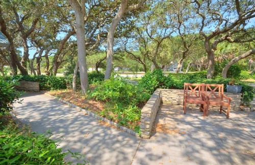 Stones throw - This lovely 3 bedroom/4 bath home has Master Suite w/ King bed with "his & her" baths, Bedroom 2 has 1 Queen bed & Bedroom 3 has 2 twin beds. Fully equipped kitchen with an additional wet bar w/ice maker. Beautifully decorated and remodeled 2020.Spacious home on ground level -no stairs to climb. Free/high speed internet / Wi-Fi, beautiful landscaping w/outside seating among the twisty oak trees. Ocean views at end of street- Short walk-under 3 minutes(300 yards) to Oak Island Pier & the beach-under 2 minutes(175 yards)-only a "Stones Throw" away!