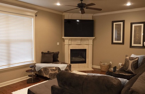 NO PARTIES!!! Close to everything including Walmart, Kroger, Apple, Lowe's, Texas Roadhouse, Banks, Freeway and more. This home has been fully stocked with everything you would need for a comfortable stay. It includes sanitizer, complimentary water bottles in the fridge, epson salt, and paper towels in every bathroom. Several different type of body wash, shampoo and condition. All the utensils you need to cook anything. The master has a king bed size while the other rooms occupy queens beds, smart Tv's in every room, jacuzzi, coffee maker, arcade machine ( with over 100 games) , giant jenga block, monopoly, connect 4, grill , and a full size pool table. iHome Apple Bluetooth speaker included with voice activated Siri can okay any song by simply saying “Hey Siri”.