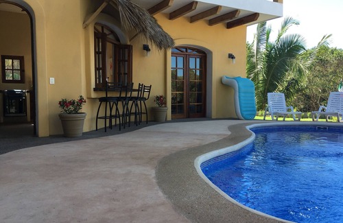 We have a king size master bedroom with walk in closet and double sinks. This room has fabulous views of the ocean from the balcony. The second bedroom is a queen size bed and it's own bathroom with a balcony and large window with breathtaking ocean views. There is a spare room with a 3rd queen size bed. We have a full kitchen with filtered drinking water, microwave, stove/oven, coffee maker, blender and cooking pots and pans and a refrigerator with an ice maker. The pool and patio living area is surrounded by grass and closed in yard that is outlined by lush shrubs. There is a fountain that runs in the pool to offer a tranquil water sound. The back yard has a bbq. You can hear the ocean from the house but removed from all the noise from town. Very comfortable home with excellent caretakers. There are boogie boards for you to use at the beach and beach towels. We have and outdoor shower for you to rinse off when you come from the beach and before entering the house. There is an outdoor spigot for you near the pool if you need to rinse feet before entering the pool.