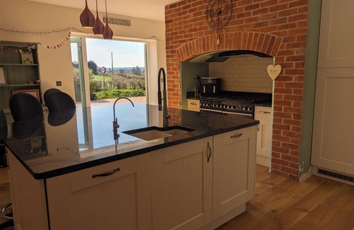 The kitchen is a wow factor modern beautiful area to create and to dine in. The house is very near a small town but just enough out to feel the open countryside. The bedrooms overlook fields and are very comfortable. There is a large garden laid to lawn and a large patio area too.