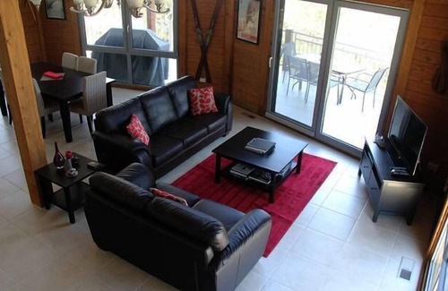 The large living and dining areas sit at the prow of the chalet and feature vast windows that open onto a balcony overlooking the beautiful Kanimbla Valley. Relax in the living room with cathedral ceilings, where you'll find two cosy leather lounges. Sit back and relax, taking in either the view or a show on the large flat screen LCD TV. Enjoy DVDs, free to air TV or one of the many Austar programmes, including sport channels.