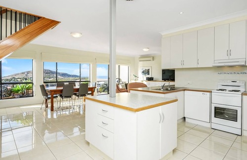 This very comfortable two-storey townhouse offers panoramic sea, bluff, and rural views, providing a picturesque setting for your vacation. Upstairs, you will find an open plan living and dining area, complete with a Plasma TV, DVD player, reverse cycle air conditioner, and a highchair for your convenience. The fully self-contained kitchen is equipped with modern amenities, including a dishwasher and microwave, making meal preparation a breeze.