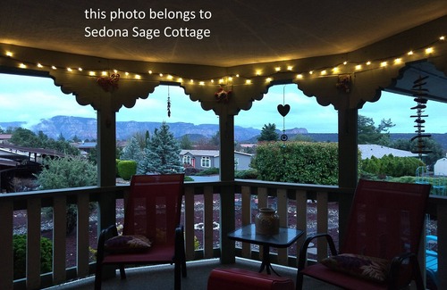 Sage Cottage sits near the base of Capitol Butte aka Thunder Mountain. It's light and cheerful with lots of space inside and out, allowing guests plenty of room for themselves and their things. The large covered carpeted deck is an extension of the home, most excellent for morning coffee and evening drinks. The deck boasts significant views and steps to a shaded patio and xeriscape grounds. Several Sedona landmarks can be seen from the property.