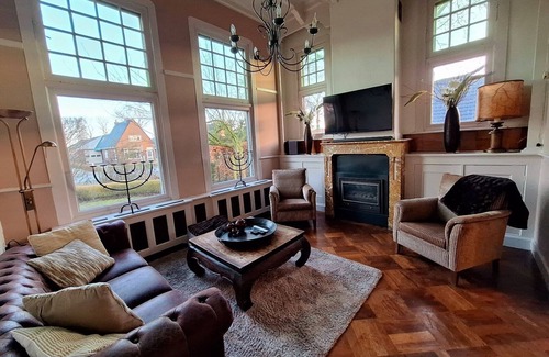 This villa is located on the world heritage Wadden Sea; has the class and allure of 100 years ago. You really feel at home, far from home. Feel the sunlight flow into the garden room. Enjoy by the fireplace or bubble in the jacuzzi room. Dine in the dinning or do a work-out in the gym. Find peace in a shaded spot under the chestnut. Or discover the idyllic Wadden Islands