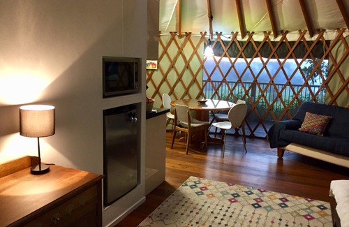 Enjoy a unique experience in a beautiful self-contained yurt with stunning hinterland views. Includes private deck and access to a beautiful lagoon pool and hot tub. A short drive to the wonderful hinterland villages of Clunes and Bangalow. Relax and revive in complete serenity.
