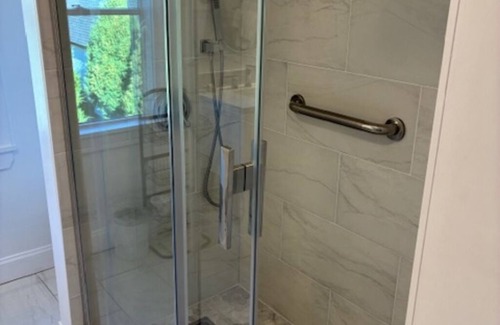The North Haven Suite is named after one of the nearby islands in Penobscot Bay where Rockport Harbor is located. This second Level Queen bedroom is accessed by the front entrance staircase. The room opens to skylights, luxury bedding, elegant decorations, romantic electric fireplace, flat screen smart TV, spacious walk in closet, and air conditioner unit. The connected en-suite bathroom overlooks the courtyard gardens and has a double vanity and full bathtub/shower. Access to the lower level of the house is restricted (unless the whole house is reserved), but North Haven Suite guests are welcome to use the firepit in the backyard. Access to adjacent lodge outdoor heated pool (open seasonally), and guest BBQ, firepit and gardens is also included plus free morning coffee in the lodge office. Entry is through Inn front door and parking is on grassy knoll alongside driveway. No smoking in or on this property. No dogs allowed in North Haven Suite. Check in at Starlight Lodge Office. 2 night minimum/$50 cleaning fee.
