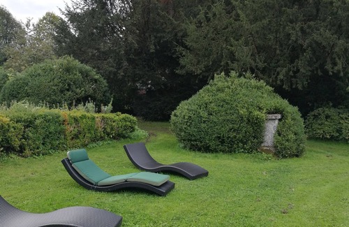 We have built our house and our garden in the sign of tranquility; the hot tub is wood-fired and stands in the back of the garden, amid the greenery. There is also a fruit hedge, a vegetable garden and chickens provide you with eggs on a regular basis.