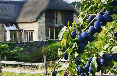 A luxurious 3 bed & 3 bath Dartmoor thatched barn for wild days out and cosy nights in. Underfloor heating, comfy sofas, fire, games room, chef's kitchen & family table, private patio, BBQ & play area