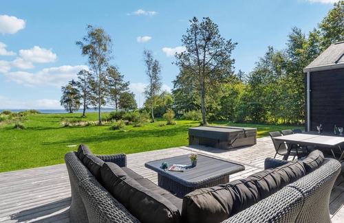 Welcome to this tasteful and light-filled vacation home, which will delight you with stylish furnishings and selected design as soon as you enter. The orientation of many rooms towards the water lets your gaze wander there again and again and invites you to make yourself comfortable on the sofas or to have the garden in view while cooking together in the modern kitchen. Either treat yourself to a soak in the bathtub or relax in the hot tub on the terrace, surrounded by the natural property and the fjord. Take advantage of the numerous terraces and walk with the sun and end the evenings with grilled food and good company.