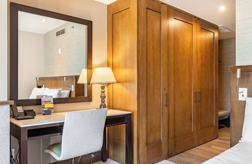 Inside Beaver Creek Solace, you'll find all the comforts of home. A king-size bed beckons after a day on the slopes, while the TV near the sitting area invites you to catch up on your favorite shows. The couch in the living space is a sleeper sofa for extra space. Feel the warmth of the fireplace, whip up a snack in the kitchenette, and take Zoom calls at the dedicated desk/vanity space.