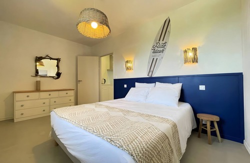 The bed and breakfast Maison Perbos 1556 - Itsasoa in La Bastide-Clairence offers you 40 m² and can accommodate up to 4 people. It features a bedroom with a queen-size bed and a separate sleeping area with a bed that can be converted into two single beds, as well as a bathroom with a walk-in shower. A well-equipped private kitchen with dining area is at your disposal, including salt, pepper, and olive oil. Enjoy the mountain view, a private terrace with independent entrance, Wi-Fi, air conditioning, TV, a workspace, beach towels, and breakfast included. A courtesy tray is also available so you can enjoy hot drinks at any time.