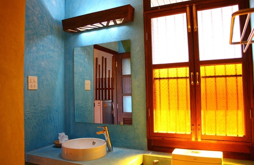 Own by 'Air' Chanrat Karatna. Located in 1.5 acres family area. 15 min to/from the airport, 5 min to the train station. The building use the old wood from my grandmother to decorate and purpose built. All clients will get a truly unique Thai experience when they stay at Villaggio Nongprateep by 'Air'. The building is on the family's land surrounding with mom's house and mine. The land belong to the generation and very long time ago. We are 'Green and Clean Place' with trees and variety of plants surrounding our place. We provide 3 rooms 3 design, 2 twin bed rooms (Queen size) and 1 double bed room (King size). Each room 24 sq.m.
