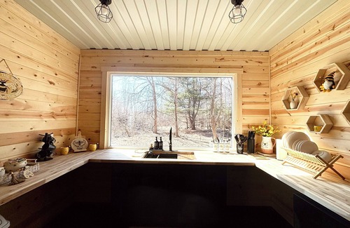 Welcome to our cabin, located on private property our cabin is built from two shipping containers, surrounded by nature and a pond. Inspired by the charm of beehive decor.
