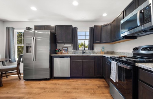 Step inside to discover a stylishly appointed space featuring two comfortable queen beds, complemented by modern amenities including sleek granite countertops, a dishwasher, and a flatscreen Roku TV for cozy evenings in. A washer and dryer ensures effortless convenience during your stay.