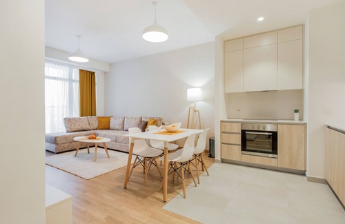 Bright brand new 1 bedroom apartment (2019 building) fully decorated with stylish and modern furniture. The apartment features a king size bed, fully equipped kitchen, high speed internet WiFi, smart TV for you to enjoy a perfect stay.