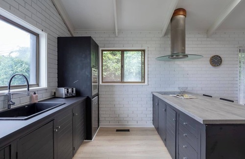 Down the hallway you’ll find four gorgeous bedrooms, each thoughtfully styled for a good night’s sleep. Two of the bedrooms each contain queen-sized beds, while the lovely child-friendly bedroom offers two single beds. At the end of the hallway, you’ll find the grand master suite custom made for parents’ privacy. It has a seating area with a TV, luxurious king-sized bed and ensuite bathroom. A main bathroom helps guests to feel refreshed with a bathtub and separate shower, while an internal laundry room adds to your everyday convenience.