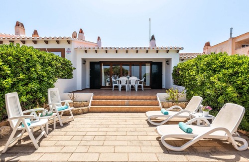 To say that Bellamirada has "sea view" is an understatement. This apartment is like a small house with a private garden, which ends practically on the fine white sands of the very beach of Punta Prima. Instead of looking at the sea, you live it directly, you are just a few steps away from the water line, as if a small part of the beach were yours. Beautiful beach by the way, so the views include usually crystal clear water with various shades between light blue and deep turquoise. For this reason, the garden and the covered terrace, which is the connection point between it and the apartment, have a table, chairs and sun loungers, so that you can make the most of this magnificent space that for the duration of your stay is yours.The charming apartment has a spacious living - dining room with an open kitchen, two bathrooms, a bedroom with a double bed and a bedroom with a trundle bed. It is ideal for a couple or for a family with children. A very important detail is as well that it has air condition in the living room.Punta Prima is the perfect place for a family vacation. It has a very complete touristic offer, the beach promenade is about 200 meters from the apartment. Here you will find everything a tourist's heart desires, restaurants, terraces, car and bicycle rental, a pharmacy, several supermarkets, souvenir shops, a handicraft market several days a week. There is a regular bus connection to Mahón, which is only about 12 km away. So you can also easily take advantage of the wide cultural and gastronomic offer that exists in the capital of Menorca.In addition to all that, in the area you can make different excursions along the Camí de Cavalls, which borders all of Menorca along the coast. We recommend the excursion to the neighboring Cala Alcaufar and Cala Rafalet.