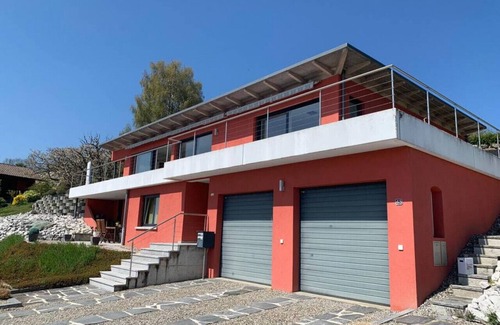 Beautiful villa with a breathtaking view of Lake Murten. The villa is located in a very quiet area and has two bedrooms. It is ideal for a relaxing stay or for holiday. The house is situated in a dead end street. This ensures that there is no traffic noise. On the other hand, this makes access by public transport very difficult. It is therefore recommended that guests have their own vehicle for the stay.