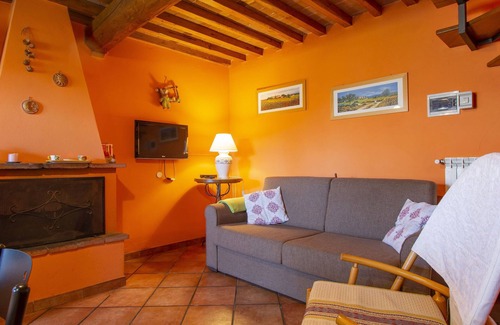 "Belvedere (BLU101)", 2-room semi-detached house 68 m2 on 2 levels. Rustic and cosy furnishings: living/sleeping room with 1 double sofabed, open-hearth fireplace, dining table and satellite TV. Small, open kitchen (oven, Gas stove, 4 gas rings, electric coffee machine). Upper floor: 1 room with 1 bed and 1 french bed (160 cm). Shower/WC. Oil heating. Terrace roofed, patio. Terrace furniture, barbecue. Panoramic view. Facilities: children's high chair, baby cot for up to 2 year olds, logs (extra). Internet (WiFi, free). Please note: non-smokers only. Maximum 2 pets/ dogs allowed. Private entrance.