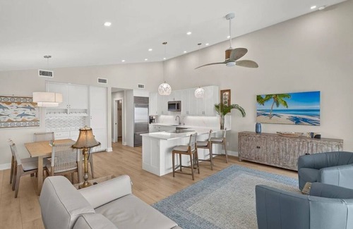 Our beautiful condo has been completely renovated and completed in June 2025. The results are beyond our expectations. The well stocked kitchen has quartz countertops and high end appliances. All the furniture is new. The dry bar has been a nice addition.